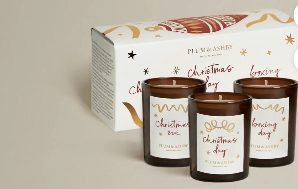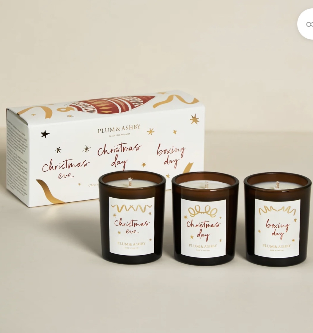 DESCRIPTION Give each of the days of Christmas its own atmosphere with this trio of votives: one each for Christmas Eve, Christmas Day and Boxing Day. Beautifully contained in bespoke illustrated packaging, featuring a festive streamer design, accented in seasonal red foil, making a lovely gift with no need even to wrap. Christmas Eve - Festive Spice & Clementine Christmas Day - Spiced Orange & Red Berry Boxing Day - Cedarwood & Pine Needles DESCRIPTION DETAILS 3 x 9cl Votives 75g/ 2.6oz Up to 20 hour burn time each Recyclable glass vessel 100% sustainable and natural soy wax Vegan friendly Not tested on animals Made in England DELIVERY PLUM & ASHBY REWARDS 3 X 20HRS BURN TIME HIGH FRAGRANCE LEVEL 100% SOY WAX 產品描述 這款三支裝蠟燭套裝,分別代表平安夜、聖誕節和節禮日,為聖誕節的每一天營造獨特的氛圍。 精美的訂製插畫包裝盒,飾以喜慶的彩帶圖案,並以應季的紅色箔紙點綴,無需額外包裝,即可作為一份精美的禮物。 平安夜 - 節日香料與柑橘 聖誕節 - 香料橙色與紅莓 節禮日 - 雪松木與松針 詳情 3 x 9cl 蠟燭杯 75克/2.6盎司 每支蠟燭燃燒時間長達20小時 可回收玻璃容器 100% 可持續天然大豆蠟 純素友好 未經動物測試 英國製造 配送 PLUM & ASHBY 會員獎勵 3 x 20小時燃燒時間 高香度
