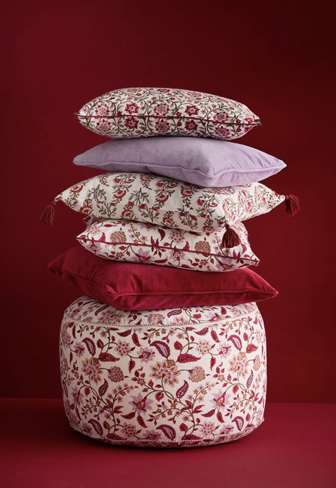 Item no. CC66GIT554 Cushion cover with handcrafted block print and tassel detail, 100% cotton. Our block-printed textiles are handmade - a process that is both intricate and time-consuming. Each piece of textile is unique, so please embrace the variations in colour and irregularities as part of the product. We see these unique characteristics as charming touches of the handmade process. Remember, we also have inner cushions that perfectly fit the cushion covers. Color: Red Material: 100% Cotton Size: W 60 x L 60 cm Care Instruction: Gentle wash 30° is recommended but no tumble drying. Avoid direct sunlight. 商品編號:CC66GIT554 手工印花靠墊套,飾有流蘇,100% 純棉。 我們的印花紡織品均為手工製作,工藝精湛,耗時費力。每件紡織品都是獨一無二的,因此請您欣賞其顏色和紋理的細微差異,並將其視為產品的一部分。我們認為這些獨特的特徵正是手工製作的魅力所在。 此外,我們也提供與靠墊套完美搭配的內芯。 顏色:紅色 材質:100% 純棉 尺寸:寬 60 x 長 60 厘米 保養說明:建議輕柔機洗,水溫 30°C,不可烘乾。避免陽光直射。