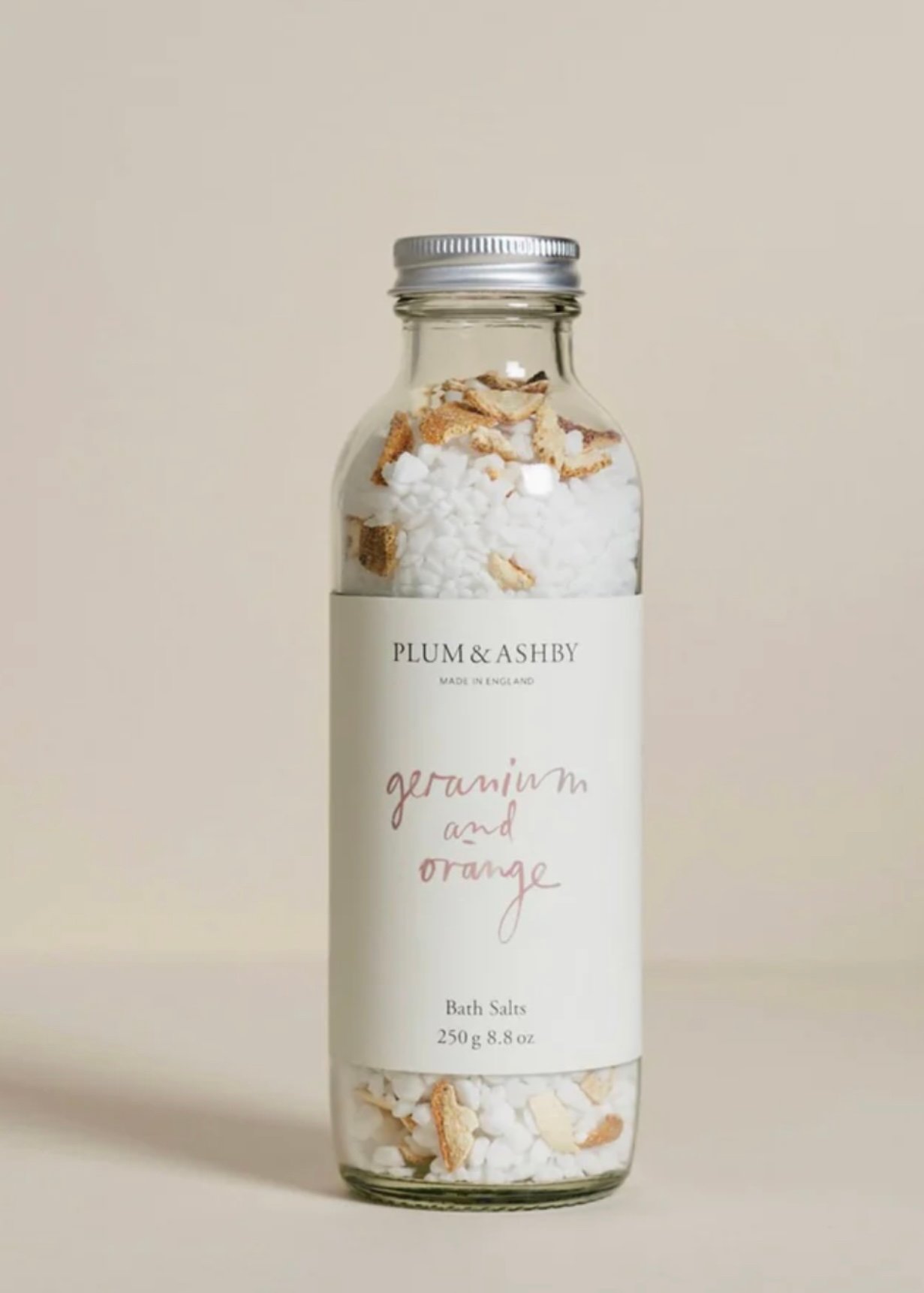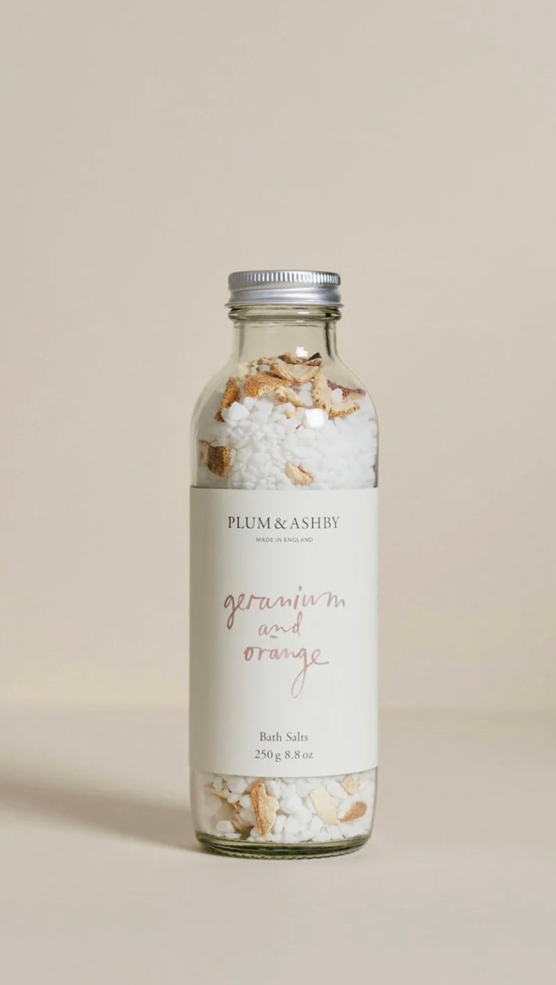 DESCRIPTION Our soothing & uplifting Geranium & Orange fragrance is filled with floral, sweet tones. When sprinkled under running water, our salts release a soothing & uplifting scent to create the perfect bath to help you completely relax and unwind. The sea salts help naturally cleanse the skin without drying and causing irritation, this perfect addition to any bath is a joy for your skin as well as your nose! SCENT Geranium & Orange is our most nostalgic fragrance. Unashamedly feminine, it is inspired by bounteous English country gardens – heady and humid greenhouses thick with leaves, pretty clusters of pink and white Geraniums tumbling over weather-worn terracotta pots. Spiked with a burst of sweet citrus, this is a fragrance that rushes headlong into summer. A refreshing opening of sweet orange, mandarin and bergamot lays on a floral heart of dew-soaked geranium and earthy lavender. At the base is an accord of soft musk and tonka beans that coalesce to create a beautiful, grounding fragrance that is rooted in sun-soaked nostalgia. Top Notes: Orange, Bergamot, Mandarin Mid Notes: Geranium, Lavender Base Notes: Tonka, Musks Scent Family: Floral DETAILS 99% Natural ingredients 250g / 8.8oz Recyclable glass vessel Not tested on animals Contains mineral-rich natural salts that replenish skin and revive muscles Made in England INGREDIENTS: Sodium Chloride, Parfum (Perfume), Pteridium Aquilinum (Karni Fern), Citral, Coumarin. This ingredient list is subject to change. Prior to use, please refer to the product label for the most accurate information 我們這款舒緩提神的天竺葵與橙花香氛,散發著甜美的花香。只需將其撒入流水中,即可釋放舒緩怡人的香氣,打造完美的沐浴體驗,幫助您徹底放鬆身心。海鹽溫和清潔肌膚,不會造成乾燥或刺激,是任何沐浴場合的理想之選,讓您的肌膚和嗅覺都倍感愉悅! Geranium & Orange is our most nostalgic fragrance. Unashamedly feminine, it is inspired by bounteous English country gardens – heady and humid greenhouses thick with leaves, pretty clusters of pink and white Geraniums tumbling over weather-worn terracotta pots. Spiked with a burst of sweet citrus, this is a fragrance that rushes headlong into summer. A refreshing opening of sweet orange, mandarin and bergamot lays on a floral heart of dew-soaked geranium and earthy lavender. At the base is an accord of soft musk and tonka beans that coalesce to create a beautiful, grounding fragrance that is rooted in sun-soaked nostalgia. Top Notes: Orange, Bergamot, Mandarin Mid Notes: Geranium, Lavender Base Notes: Tonka, Musks Scent Family: Floral DETAILS 產品詳情 99% 天然成分 250克/8.8盎司 可回收玻璃瓶 未經動物測試 富含礦物質的天然鹽分,滋養肌膚,煥發肌肉 英國製造 成分:氯化鈉、香精、蕨類植物(卡尼蕨)、檸檬醛、香豆素。 成分清單可能會有所變更。使用前,請以產品標籤上的資訊為準。