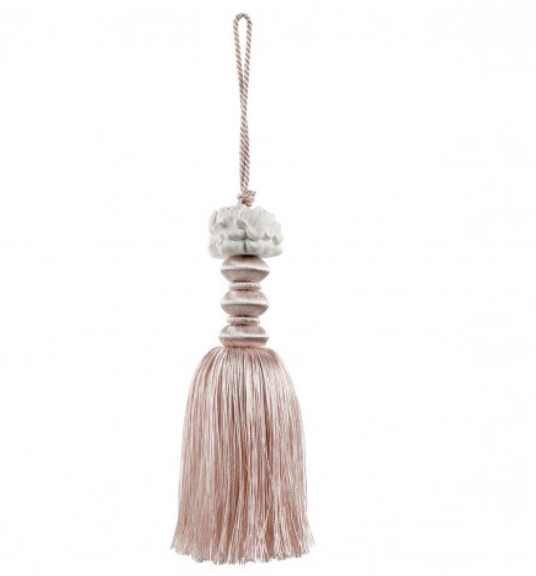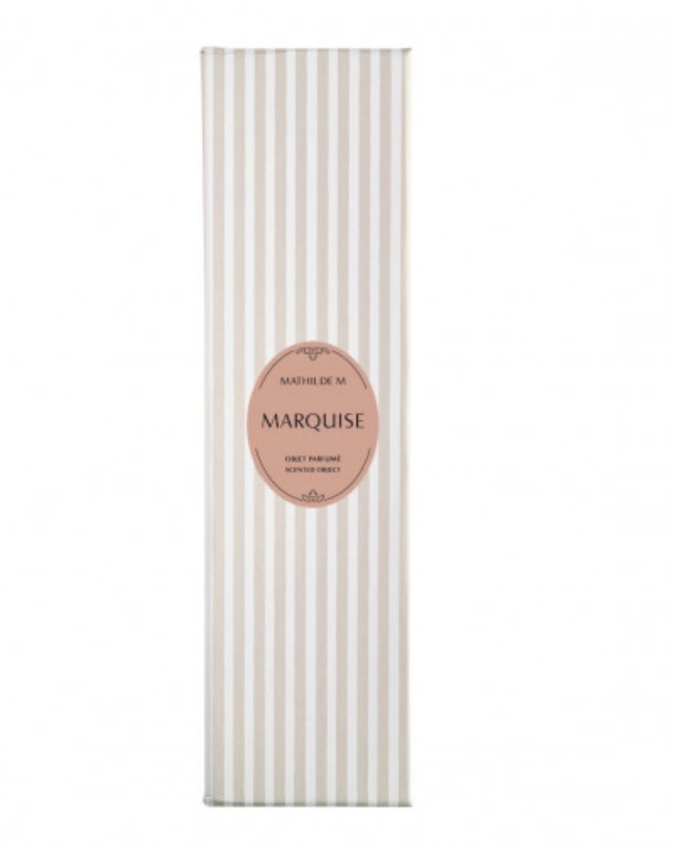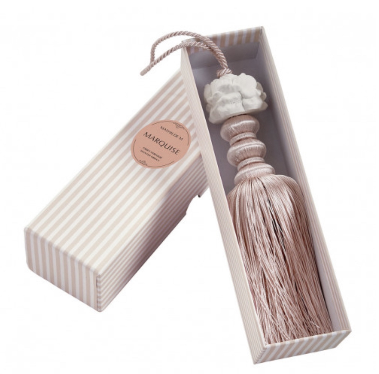 Discover Marquise, the iconic fragrance of Mathilde M, a precious and irresistibly sensual scent that combines woody and spicy notes with the sweetness of vanilla and musk. Inspired by the most beautiful trimmings, this sumptuous Fleur Royale tassel, adorned with a meticulously hand-carved scented plaster decoration, diffuses its gentle fragrance wherever it is hung: on door handles, drawers, or wardrobes. Good to know Emblematic of the brand, Mathilde M plaster decorations are delicately scented and handmade in our workshops using artisanal methods by our ornamental sculptor. Our usage tips When the scent fades, revive it with Mathilde M room fragrance concentrate. A spray applied about 10 cm from the plaster decoration is enough to re-scent it for several weeks. Additional information Tassel composition: polyester, scented plaster Tassel dimensions: ø 4.5 x 30 cm Box dimensions: 6 x 23 x 4.6 cm 探索 Mathilde M 的標誌性香氛 Marquise,這款珍貴而迷人的香氛將木質辛辣與香草和麝香的甜美完美融合。 這款奢華的 Fleur Royale 流蘇香水靈感源自最精美的飾邊,飾以手工精心雕刻的香氛石膏裝飾,無論懸掛於門把手、抽屜還是衣櫃,都能散發出淡淡的芬芳。 溫馨提示 作為品牌的標誌性元素,Mathilde M 的石膏裝飾由我們的裝飾雕塑家採用精湛的手工技藝,精心調配香氛。 使用技巧 當香味消散時,可使用 Mathilde M 室內香氛濃縮液使其恢復活力。距離石膏裝飾約 10 公分處噴灑,即可保持數週的香氣。 附加資訊 流蘇材質:滌綸,香薰石膏 流蘇尺寸:直徑 4.5 x 30 厘米 盒子尺寸:6 x 23 x 4.6 厘米