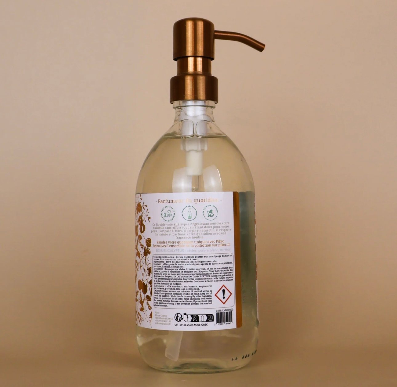 Eucalyptus Wood: cedar, white pepper, mineral. New bottle to make your kitchen radiate good humor and elegance! Wash all your dishes effortlessly with an ultra-degreasing dishwashing liquid, suitable for sensitive skin and respectful of the planet. 100% natural Tested and approved for sensitive skin Enriched with aloe vera Glass bottle Made in France While washing your dishes, enjoy the scent of our natural and sophisticated fragrance , Eucalyptus Wood. A zen and mineral moment. Transport yourself to the Swedish mountains with dry woods and cold spices. Refillable glass bottle + 500mL of dishwashing liquid To reduce environmental impact, follow the recommended usage doses. Quantity: To reduce environmental impact, follow the recommended usage doses. Quantity: Add to cart Buy with More payment options A few drops on a damp sponge or directly on the surface to be washed, rub and rinse with water. ECO-TIPS: To save water and energy while washing efficiently, immerse dishes instead of washing them under the tap and follow the recommended detergent dosages. Effective washing does not require a large amount of foam. 100% of the ingredients are natural Ingredients: < 5% anionic surfactants, amphoteric surfactants, perfumes, d-limonene. 尤加利香:雪松、白胡椒、礦物。 全新瓶身,為您的廚房增添愉悅與優雅! 這款超強去油洗潔精,溫和清潔所有餐具,呵護敏感肌膚,同時兼顧環保。 100% 天然 經敏感肌膚測試認證 富含蘆薈精華 玻璃瓶裝 法國製造 洗碗的同時,享受我們天然精緻的尤加利香氛。感受寧靜與礦物氣息,彷彿置身瑞典山巒,沉浸於乾燥的木質香調和清冷的香料之中。 可重複填充玻璃瓶 + 500毫升洗潔精 為減少對環境的影響,請遵循建議用量。