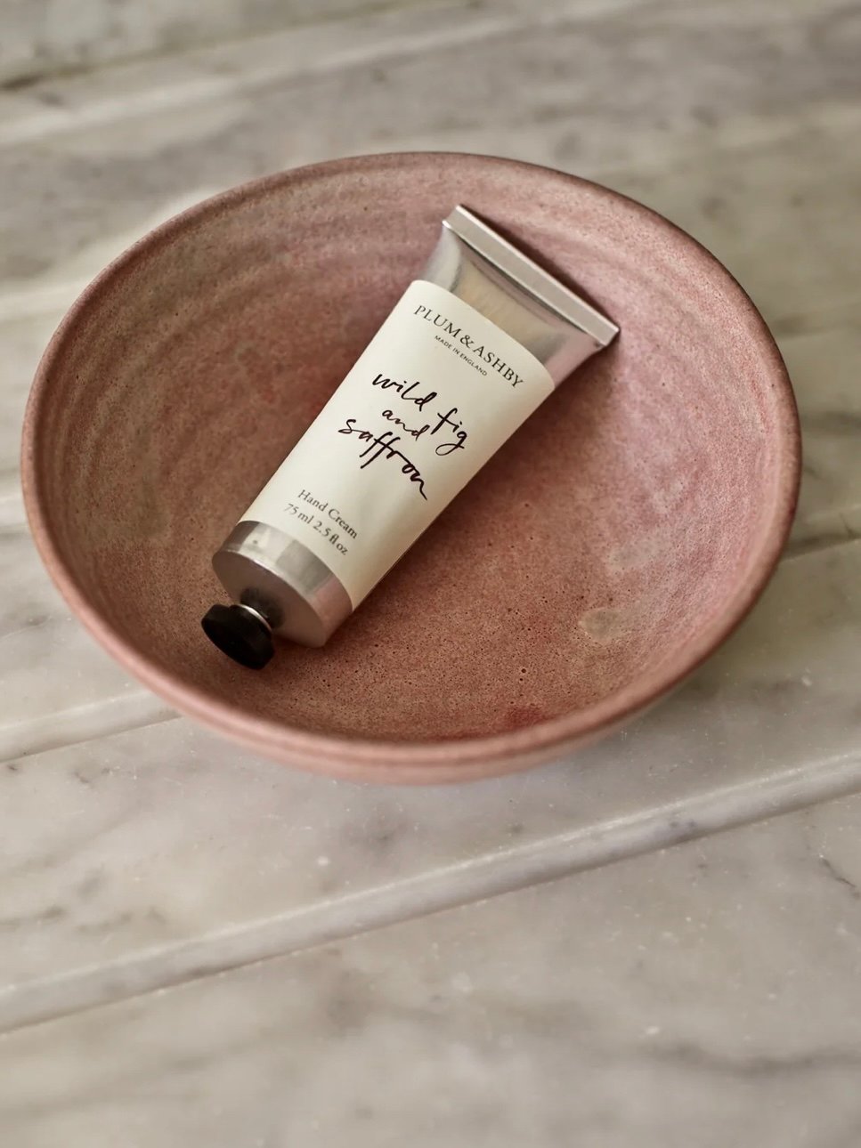 DESCRIPTION Our ultra nourishing hand cream is a lovely on-the-go treat. With a deeply hydrating blend of cocoa and shea butter, simply massage this softly scented cream into your skin leaving your hands feeling soft and smooth all day long. SCENT This enveloping fragrance evokes the slow and soothing mood of a late summer afternoon – passing through a ripe, golden landscape to sit under the shade of a mature fig tree on a terrace of sun-baked bricks. Honeyed treats, ripe fruits and the accompanying buzz of insects are all evoked in this soft and sensual scent. The fragrance begins with a breath of leafy green, sharp blackcurrants and milky-sweet fig. At its core are dried fruits and earthy, hay-like saffron that are underpinned by soft amber, heady patchouli and warm vanilla. Top Notes: Leafy, Green, Blackcurrant, Fig Mid Notes: Dried Fruits, Saffron Base Notes: Woods, Moss, Amber, Patchouli, Vanilla Scent Family: Amber DETAILS INGREDIENTS INGREDIENTS: Aqua (Water), Prunus Amygdalus Dulcis Oil (Sweet Almond Oil), Cetearyl Alcohol, Glyceryl Stearate, Butyrospermum Parkii (Shea Butter), Theobroma Cacao (Cocoa Butter), Glycerin, Simmondsia Chinensis Seed Oil (Jojoba Oil), Phenoxyethanol, Parfum (Perfume), Tocopherol (Vitamin E), Xanthan Gum, Ethylhexylglycerin, Panthenol, Limonene, Linalool, Citronellol, Eugenol, Benzyl Alcohol. This ingredient list is subject to change. Prior to use, please refer to the product label for the most accurate information. DELIVERY PLUM & ASHBY REWARDS 98% NATURAL INGREDIENTS NOURISHING & QUICKLY ABSORBING LONG 我們這款滋養力極強的護手霜是外出時的理想選擇。它蘊含可可脂和乳木果油的深層保濕配方,只需輕輕按摩於肌膚,即可令雙手一整天保持柔軟光滑,散發淡淡清香。 香氛 這款馥鬱的香氛喚起夏末午後悠閒舒緩的氛圍——漫步於金黃成熟的田園,在陽光炙烤的磚砌露台上,於一棵枝繁葉茂的無花果樹蔭下休憩。蜂蜜的香甜、成熟水果的芬芳,以及昆蟲的嗡鳴,都融入了這款柔和而感性的香氛之中。 前調是清新的綠葉、濃鬱的黑醋栗和甜美的無花果。中調是乾果和帶有泥土氣息、類似乾草的藏紅花,並以柔和的琥珀、濃鬱的廣藿香和溫暖的香草作為基調。 前調:綠葉、青草、黑醋栗、無花果 中調:乾果、番紅花 基調:木質香調、苔蘚、琥珀、廣藿香、香草 75毫升/2.5液盎司 98%天然成分 可回收鋁管包裝 未經動物測試 英國製造 蘊含可可脂和乳木果油,滋養、保護並修護乾燥肌膚